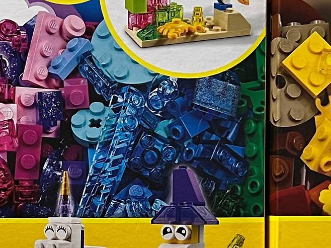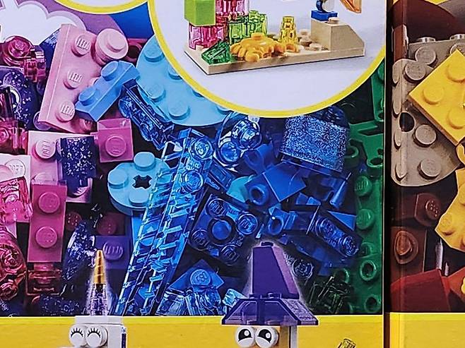 이번에는 실내에서 다양한 색상이 인쇄된 상자를 촬영한 샘플이다. 갤럭시 Z 플립4가 비교대상에 비해 좀 더 밝고 화사하게 보이는데, 이 영향으로 어두운 부분을 비교해보면 비교대상은 사물의 경계가 약간 뭉개진 느낌이 든다.