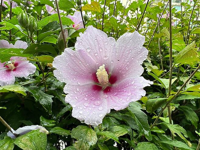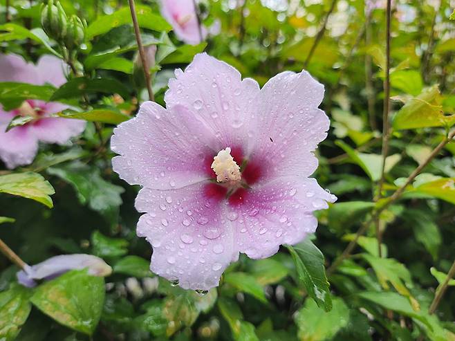 다음 샘플은 야외에서 주간에 촬영한 연보라색 무궁화로, 두 기종의 표현이 사뭇 다르다. 갤럭시 Z 플립4는 배경을 흐릿하게 처리해 피사체의 집중도를 높이면서도 색상 표현이나 가운데 수술 부분의 선명도도 높다. 비교대상은 심도가 깊어 배경 부분까지 전체적으로 선명하게 촬영되었기 때문에 선명도는 더 높아 보이지만 피사체의 집중도는 다소 부족하다.