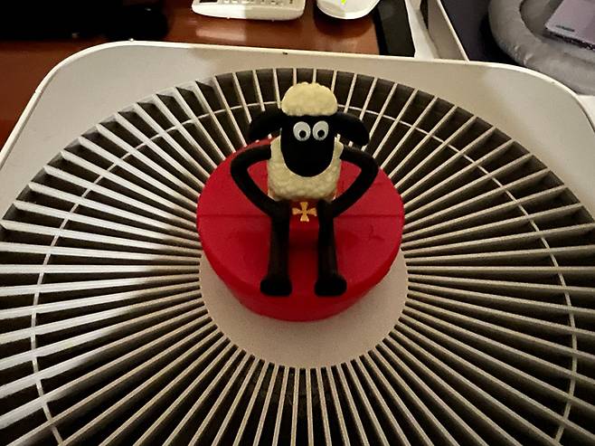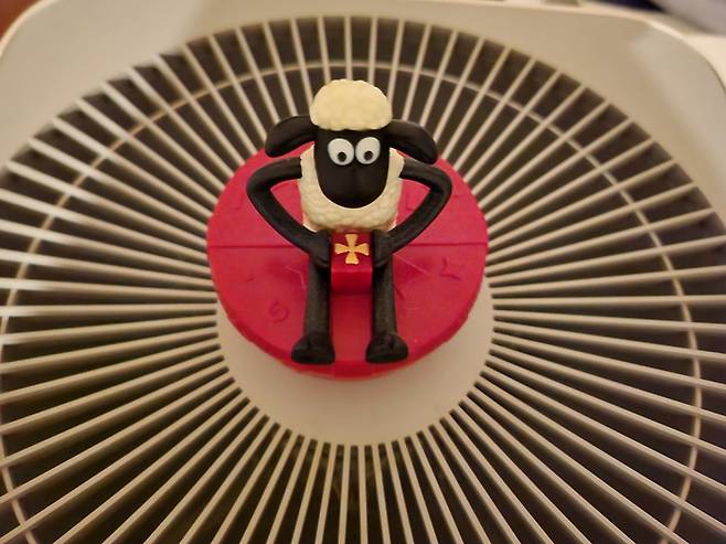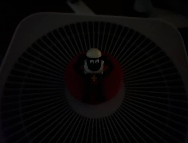 다음은 동일한 환경에 간접조명 하나만 추가된 상황이다. 이 때는 두 기종 모두 피사체에 초점을 맞추고 주변도 밝게 촬영되었으며, 비교대상은 피사체의 검은색 부분이나 그 아래 붉은색 부분의 디테일이 다소 뭉개진 상태로 보이지만 갤럭시 Z 플립4는 검은색 부분의 형태도 명확하고 아래쪽 붉은색 받침의 표면에 있는 요철도 명확하게 보인다.