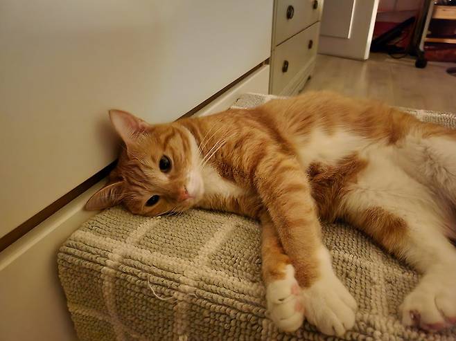 마지막으로 야간 실내에서 간접조명 하나만 켜 둔 어두운 상황에서 고양이를 촬영해보았다. 간접조명이 노란색인데, 갤럭시 Z 플립4는 조명 색상이 그대로 반영된 실제 환경에 가까운 색감에서 노랑톤이 좀 더 강조된 모습이며 비교대상은 화이트밸런스가 보정된 듯한 색감을 보여주고 있다. 고양이 몸의 털 부분을 보면 갤럭시 Z 플립4는 부드러운 만큼 디테일은 조금 낮은 모습이며, 비교대상은 굉장히 선명한 느낌이다. 전체적인 밝기는 갤럭시 Z 플립4가 더 밝게 표현되면서 고양이 눈의 동공과 홍채가 명확하게 구분되며, 비교대상은 좀 더 어두워서 동공과 홍채의 경계가 잘 구분되지 않는다.
