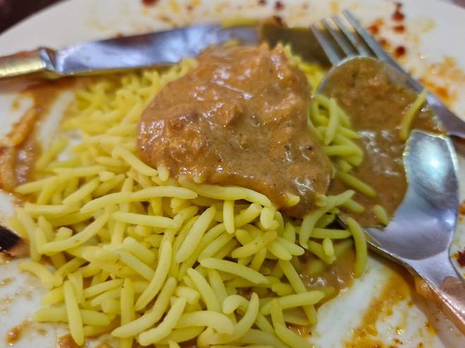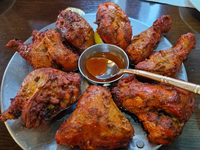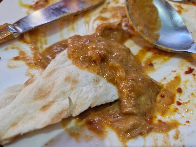 탄두리 치킨은 향신료 맛이긴 하겠지만 확실히 우리나라 치킨과는 맛이 다르다. 화덕의 불맛도 있을 것이다. 두 가지 커리에 찍어먹은 난 역시도 우리나라 오뚜기 카레가 맛나다고 하지만 비할 바가 아니다.