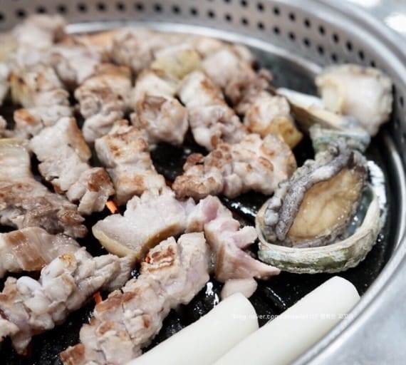 돈사돈에서는 흑돼지를 구울 때 무쇠 팬이나 석쇠를 사용합니다. 특히 석쇠를 사용하면 기름기가 빠져 더욱 담백한 맛을 즐길 수 있어요.