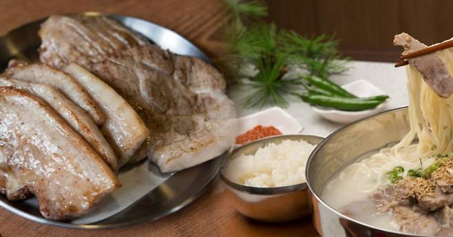 올레국수는 메밀가루로 만든 면을 돼지고기 국물에 말아 먹는 제주도의 향토 음식이에요. 여기에 부드러운 흑돼지 수육을 곁들이면 그야말로 환상의 조합이 됩니다.