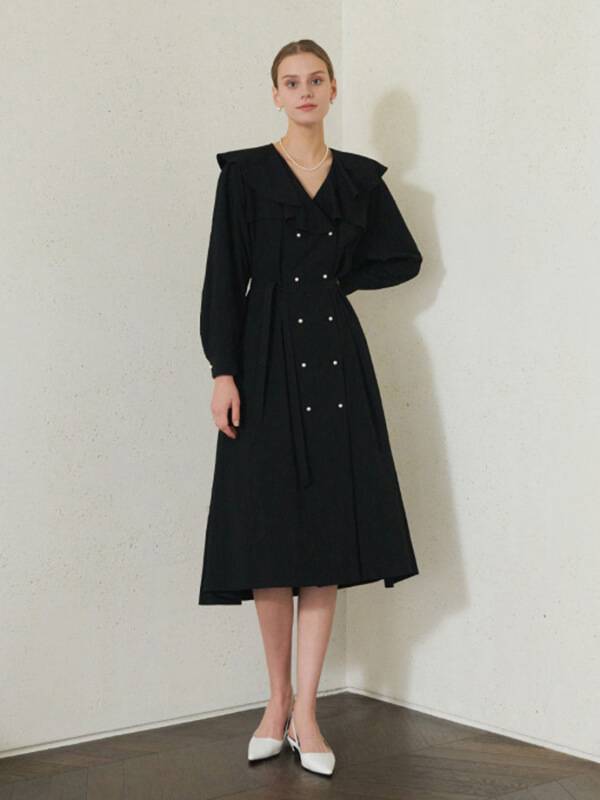 아티드는 스타일을 넘어 다양한 순간을 대하는 태도(Attitude)를 뜻한다. 스스로에게 자신감을 갖고 인생에서 주도적인 선택을 하는 나를 표현하는 브랜드다. 프릴 카라 진주 단추 원피스는 드라마틱한 외관이 인상적인 제품이다. 여성스러운 프릴 카라에 풍성하게 플레어 지는 실루엣이 매력적이다. 허리끈을 묶으면 슬림하게 연출 가능하다.