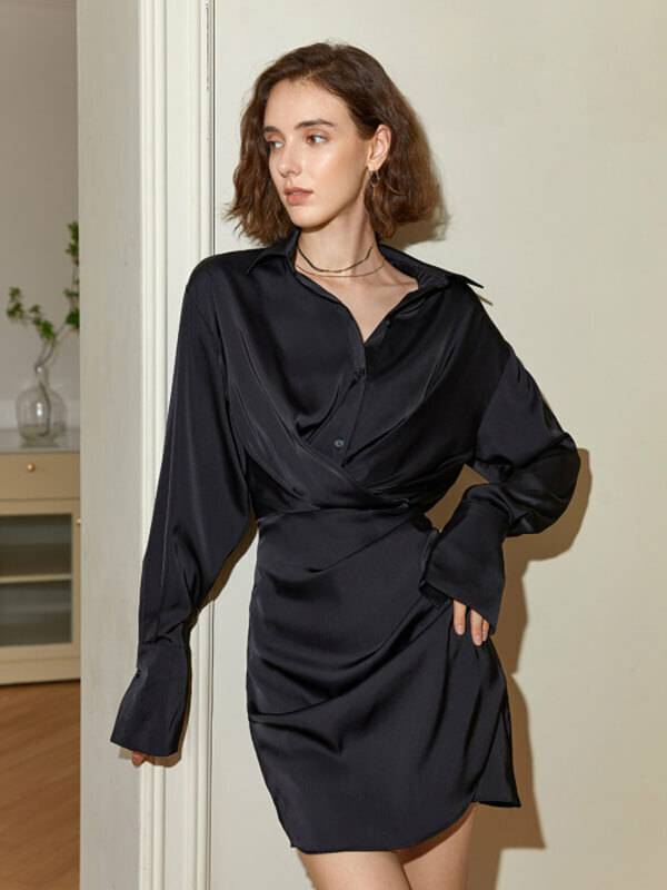 와이와이아이엠은 특별한 것이 아닌 일상 속 삶 또는 내면에서 우러나오는 영화 속 주인공의 설레는 여성이 되고싶은 고객을 위한 브랜드다. YY silken dark black waist gather dress는 페미닌한 실루엣이 돋보이는 랩 원피스다. 광택감 있는 소재를 활용해 글래머러스한 분위기를 자아내며 소개팅룩, 파티룩 등 어디에나 잘 어울리는 디자인이 특징이다.