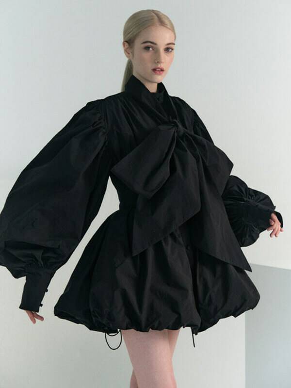 한나신은 디자이너의 현대적인 예술적 감성을 바탕으로 패션의 새로운 미래를 제시하는 여성복 브랜드다. 날카로운 재단과 섬세한 디자인으로 건축의 구조적인 실루엣과 직물의 무게감을 재해석하며, 매 시즌 스토리텔링이 담긴 자체 제작 소재들로 브랜드의 컨셉을 전개한다. BALLOON SILHOUETTE SHIRTS DRESS는 아방가르드한 실루엣으로 눈길을 사로잡는 제품이다. 셔링, 퍼프, 리본 디테일이 더해져 남다른 분위기를 자아낸다.