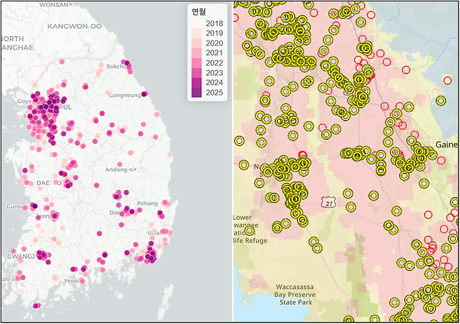 지도를 제작한 윤 씨는 과학 전문 매체 기자 출신이다. 그는 “시민들의 불안감을 해소하고 정확한 정보를 전달하기 위해 지도를 만들었다”며 “지역별, 원인별, 시기별 사고 발생 현황을 한눈에 확인할 수 있도록 구성했다”고 덧붙였다.