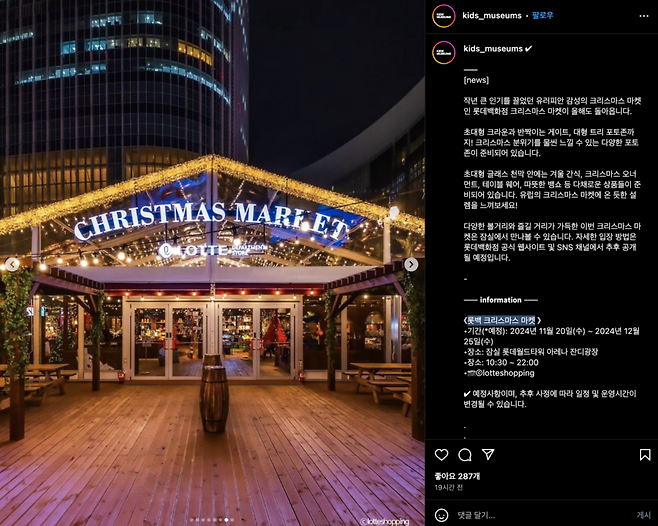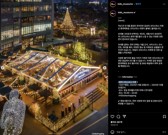 올해도 매력 넘치는 크리스마스 시즌이 찾아왔습니다! 지난 해 큰 사랑을 받았던 롯데백화점 크리스마스 마켓이 다시 한번 여러분을 유럽의 크리스마스 마켓으로 안내합니다. 겨울의 설렘과 반짝이는 순간을 가득 담은 이번 마켓에서 크리스마스의 따뜻한 마법을 느껴보세요.