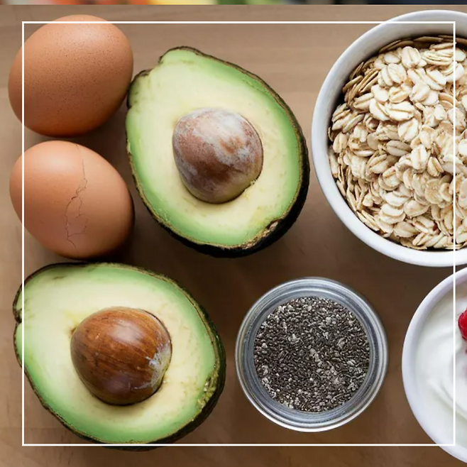 달걀에는 뇌 기능에 중요한 콜린이 들어 있고, 아보카도는 신경 전달에 좋은 오메가-9 지방산을 제공합니다.