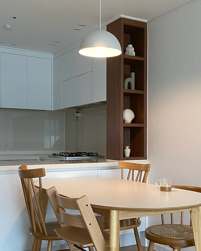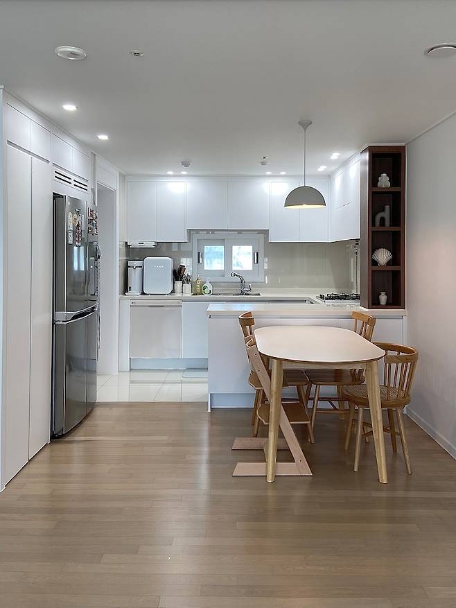 현재 보금자리는 화이트&우드 컨셉으로 2주간 부분 시공을 해서 입주했어요. 그리고 아이가 있고 매일 청소하는 타입이다 보니 소품을 최소화하고 미니멀하게 지내고 있습니다:-D