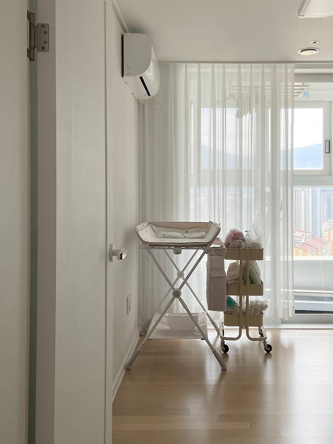 현재로서는 드레스룸과 둘째의 용품을 두는 곳으로 사용하고 있지만, 아이들이 크고 나면 같이 방을 쓰게 할 계획이에요.