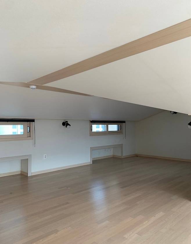 다락방이라고 하기엔 넓고 층고도 높아요. 약 16평 정도 됩니다.