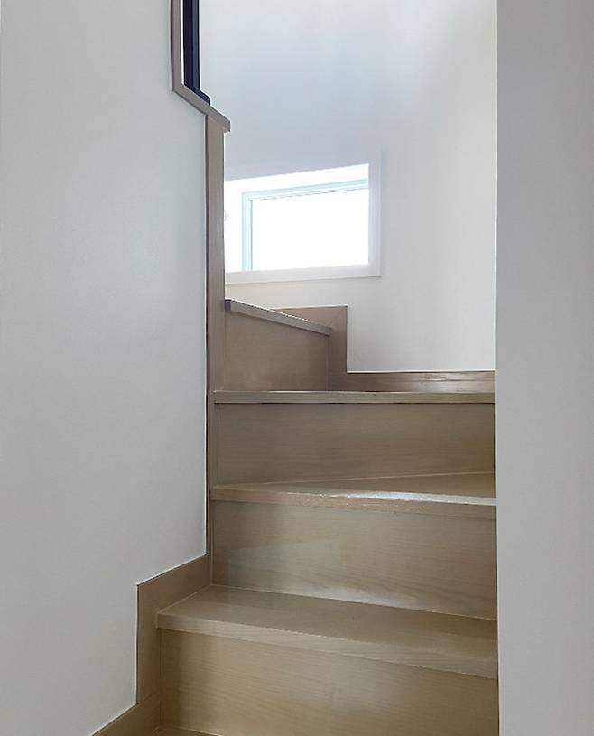 계단에 자그마한 창문이 있는데 뒷산 풍경이 너무 예뻐요. 그곳에 아이가 앉아서 바깥을 구경하며 쫑알쫑알 이야기할 때 너무 사랑스럽답니다:-)