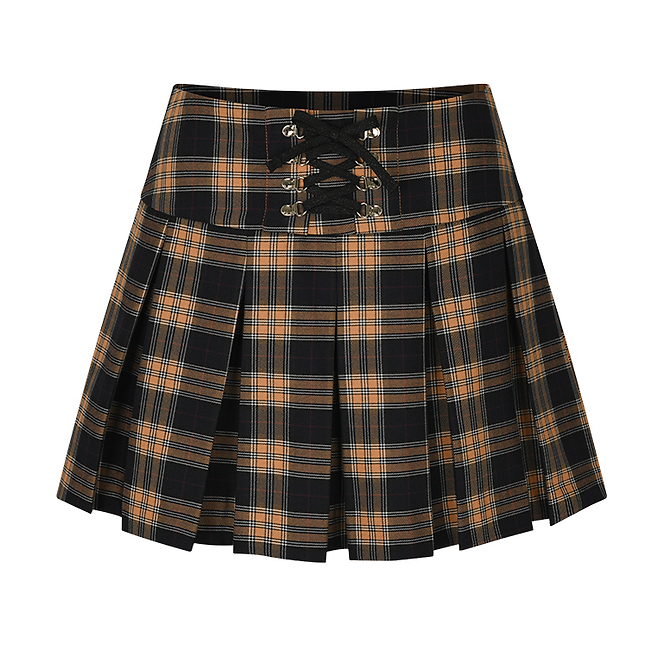 #큐리티 C corset checked pleats skirt BEIGE