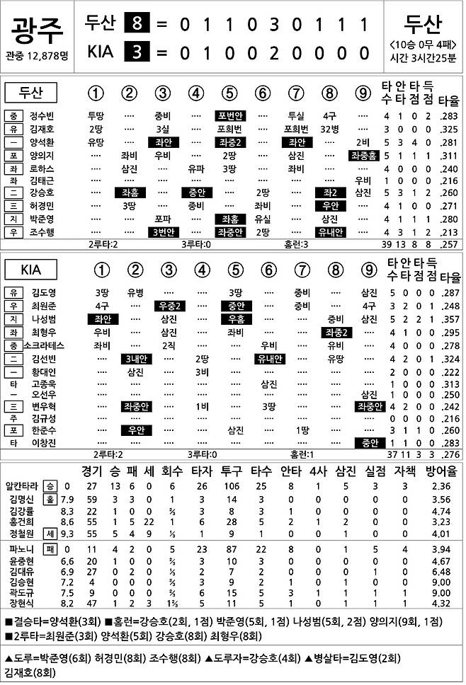 [2023 KBO리그 기록실] 두산 vs KIA (9월 17일)