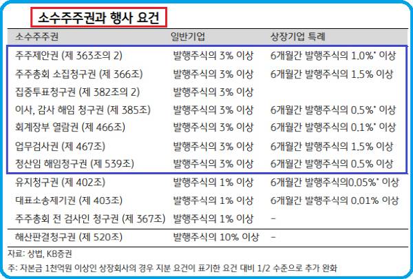 행동주의 펀드들(Activist Funds)이 주주제안에 많이 담는 요구 중 하나는 감사. 감사위원 후보를 추천하는 것이다. 또한 소수주주권을 행사할 수 있는 요건도 완화되어 일정기간 주식을 보유하지 않아도 상장사 지분을 3% 이상 확보한 헤지펀드(Hedge Fund)는 손쉽게 주주총회 소집청구, 주주제안, 회계장부열람권 등의 소수주주권 행사도 가능하게 되었다. 때로는 기업 대주주와 경영권 분쟁을 벌이기도 하는데 실제의 목적이 지배구조개선을 위한 경우도 있겠지만 경영권 분쟁 이슈(Issue)를 야기하여 주가상승을 유도하고 출구전략으로 활용한 경우도 많았다.