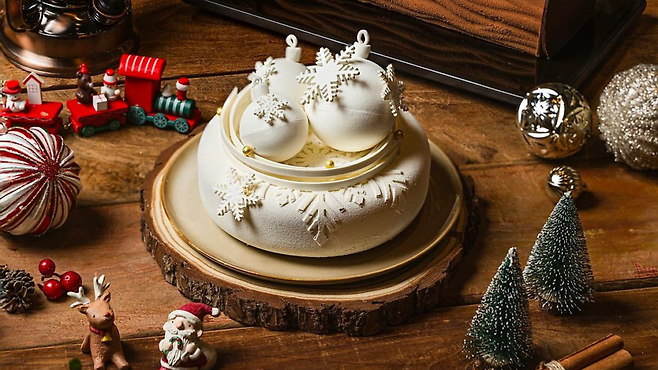 이 케이크는 발로나 시그니처 화이트 초콜릿을 사용해 눈 내린 겨울을 표현했으며, 눈처럼 새하얀 크리스마스 오너먼트 장식이 더해져 보기만 해도 설레는 분위기를 자아냅니다. 케이크와 함께 제공되는 스파클링 와인 한 병은 객실에서의 오붓한 시간을 더욱 달콤하게 만들어 줄 거예요.