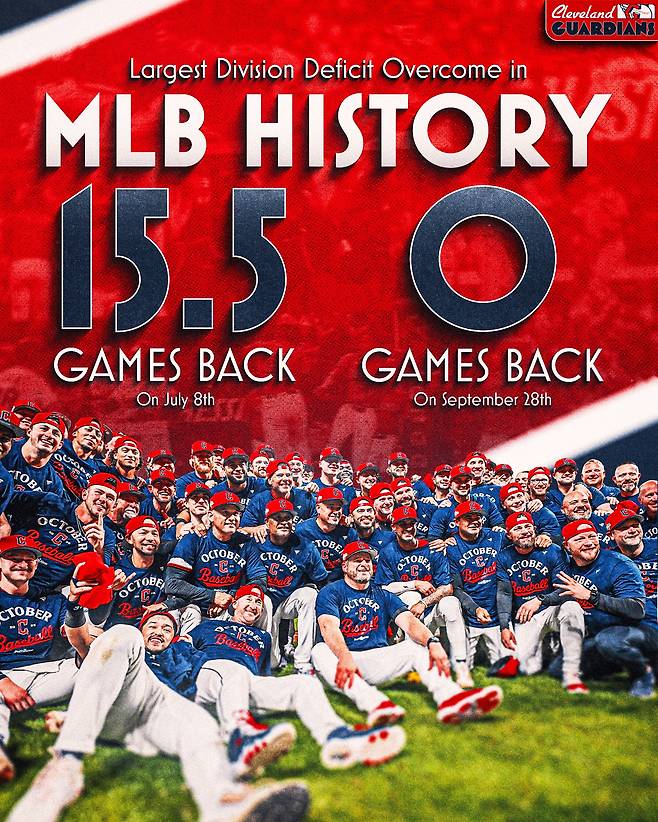 7월9일, 클리블랜드는 지구 선두 디트로이트와 15경기 반 차이가 났다. 하지만 이후 엄청난 질주로 이 격차를 뒤집었다. 메이저리그 역사상 최초의 사례다(1914년 보스턴 브레이브스가 15경기 차이를 이겨내고 리그 우승을 한 적이 있다).