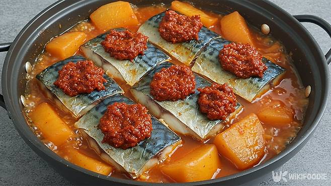 양념장은 고춧가루 5큰술, 진간장 3큰술, 멸치액젓 2큰술, 미림 2큰술, 된장 1큰술, 다진 마늘 2큰술로 만든다. 된장은 감칠맛을 더하지만 냄새가 강하지 않아 식구들 대부분은 들어간 줄 모른다. 강하지 않은 된장의 짠맛과 장맛이 전체 국물의 중심을 잡아준다. 이 한 스푼이 고등어와 무를 연결해주는 역할을 한다.