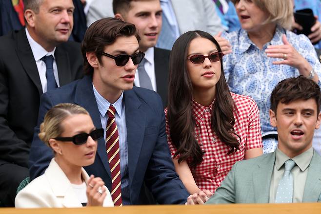 지난 2일, 윔블던 챔피언십 경기장에서 올리비아 로드리고와 루이스 패트리지의 달콤한 커플룩을 포착했다.