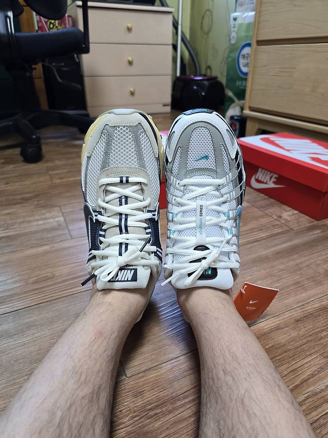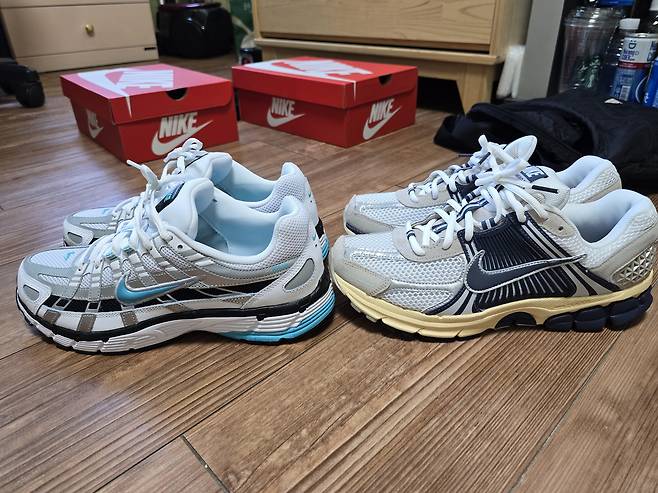 얼마전 아버지 p6000 사드리고 실물이 옛날 맥스95가 생각나는 디자인이라 옛 추억이 떠올라 저도 한개 사보려고 기회를 노리다가 나이키 공홈에서 세일을 하길래 줌 보메로5까지 두켤레를 주문했습니다