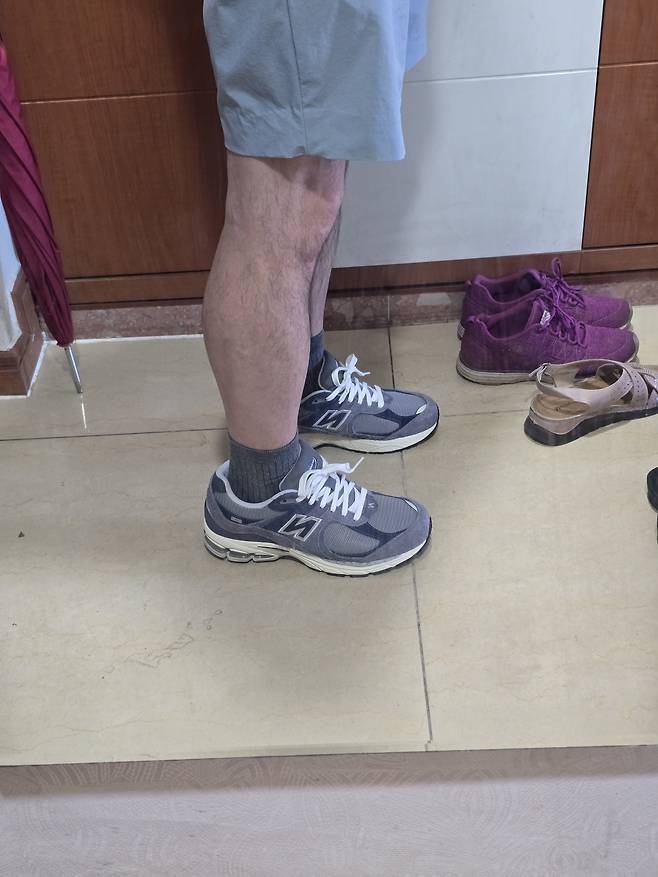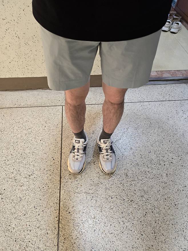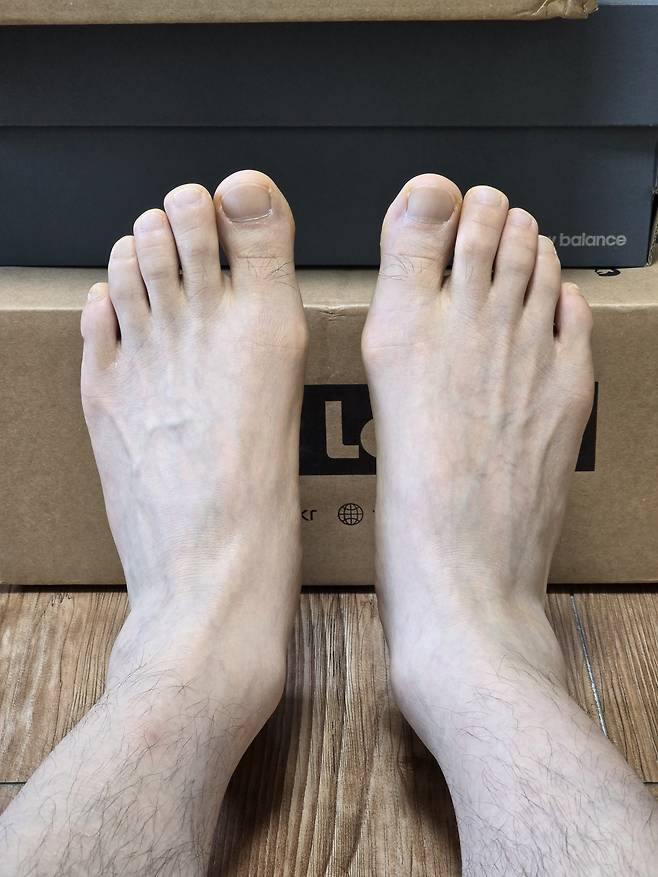 통풍에 걸려서 오른쪽 엄지가 살짝 휜 제 발입니다ㅠㅠ