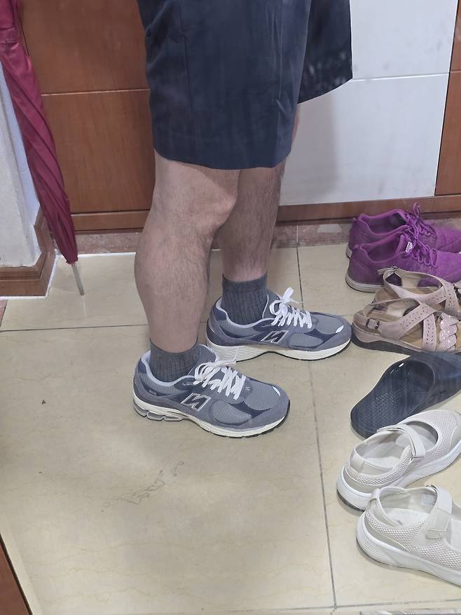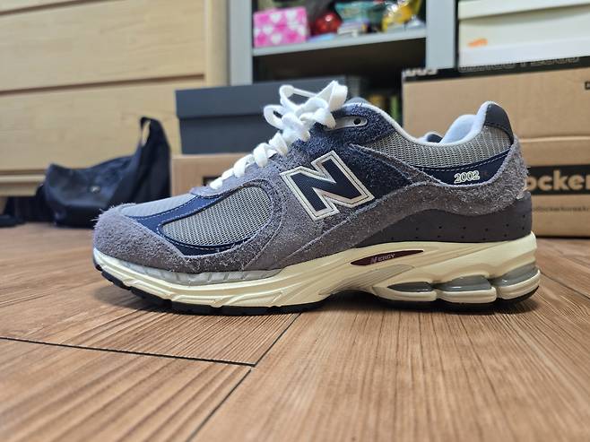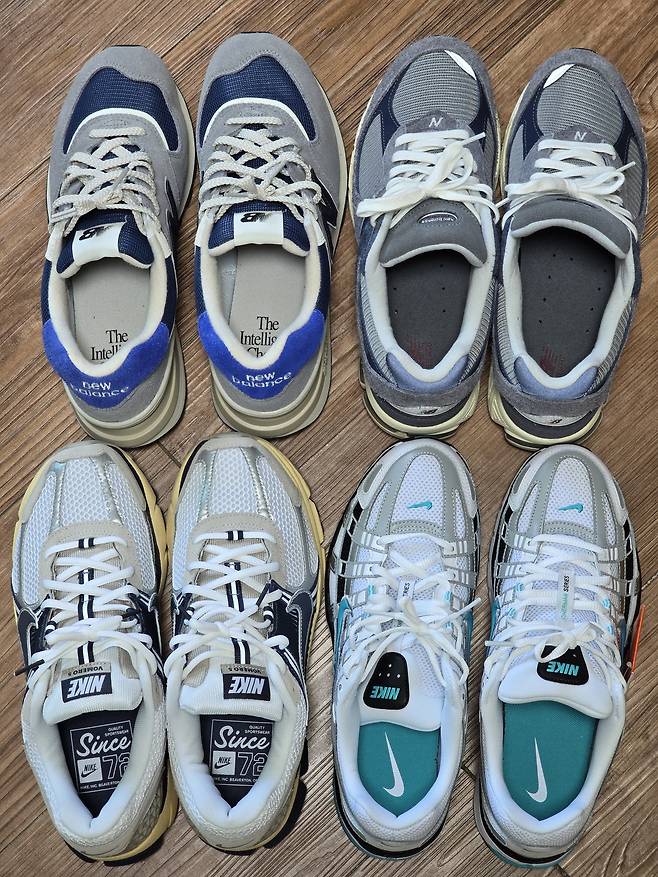 제가 몸을 뭔가가 압박하는걸 극도로 싫어해서 시계나 악세사리는 일체 안하고 겉옷은 무조건 한사이즈 업 속옷은 두사이즈 업 신발은 반사이즈 업 해서 헐렁하게 신고 다니는데 나이키 두 제품 모두 270 이번에 구입한 뉴발은 2002는 275 574는 270을 구매 했습니다