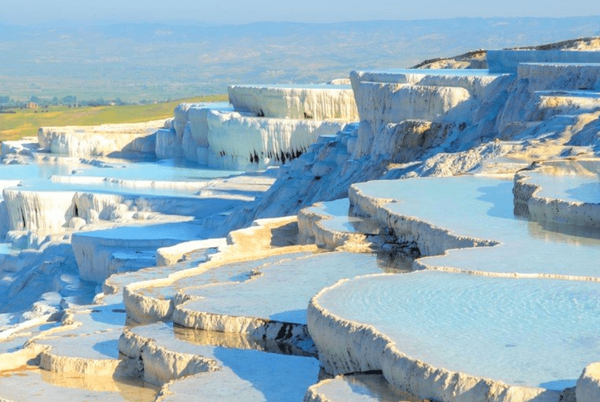 계단식 논처럼 보이는 석회붕에는 온천수가 담겨 있는데요. 온천 효과가 뛰어나서 황제도 온천욕을 하러 올 정도로 유명한 곳인 파묵칼레는 현재 세계 문화 자연유산으로도 지정되어 있는 곳입니다.