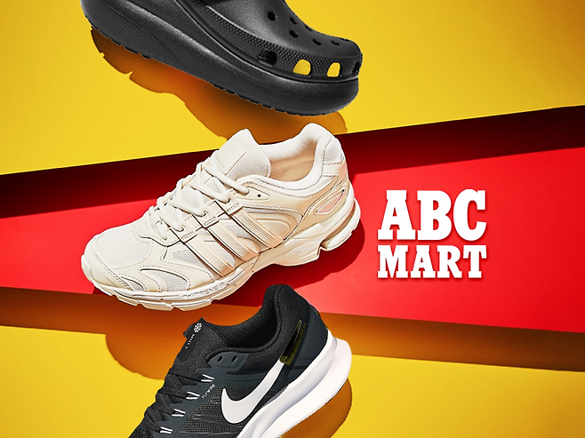 시장통 같은 친근함은 ABC마트 곳곳에 녹아있어요. 이름부터 그래요. 고급스럽게 보이려는 노력이 전혀 없죠. 노랑과 빨강이 어우러진, 강렬하면서도 좀 촌스러운 키 컬러도 그렇고요.
