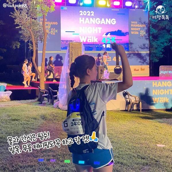 오래 걸을 일이 잘 없는 현대 사회에서 잠시나마 '현생'을 내려두고 오롯이 나와, 함께 걷는 사람과의 시간을 보내보는 것은 어떨까요? 반짝이는 한강의 야경까지 구경하며 자신의 한계에 부딪히며 한 단계 더 성장해보는 기회를 갖는 것도 좋겠습니다.