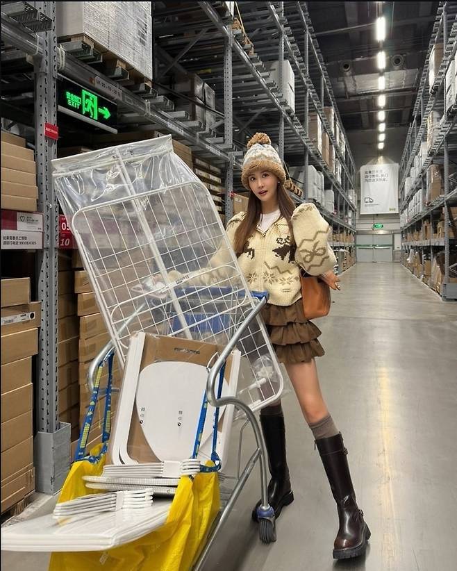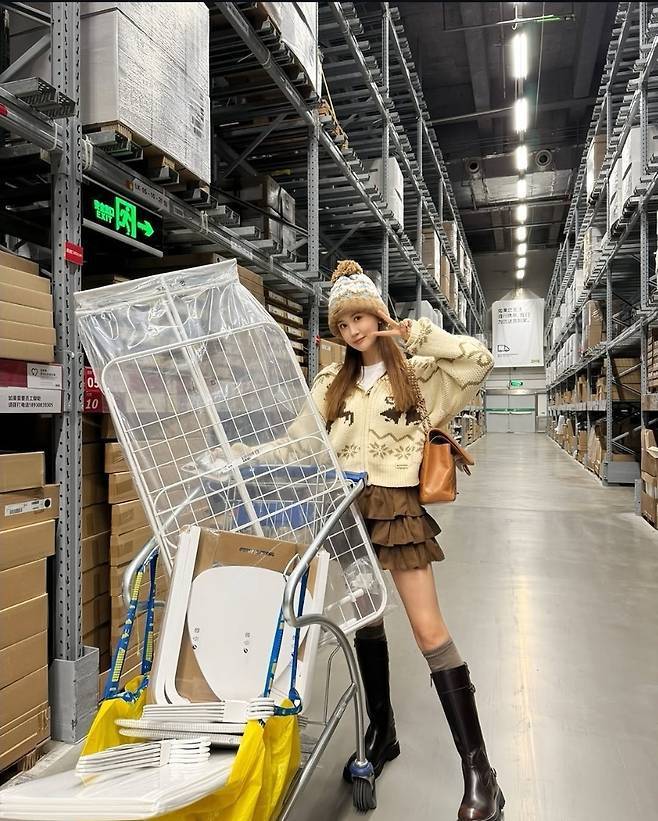 포근한 니트의 노르딕 패턴과 함께 어우러진 비니 모자는 귀여움을 더했고, 니하이 삭스와 롱부츠로 스타일링해 전체적으로 따뜻한 느낌을 살렸습니다.