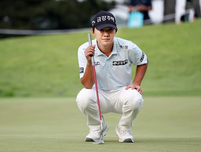 <사진> 신중하게 퍼팅 라인을 읽고 있는 옥태훈. 채널에이 자료
