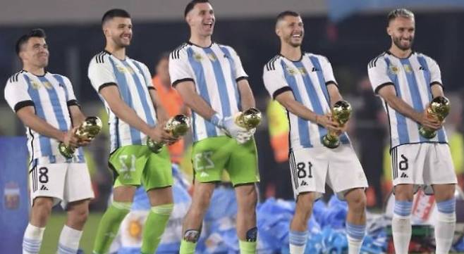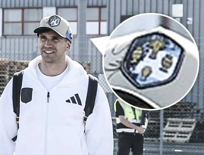 2021, 2024년 남미축구연맹 코파 아메리카 우승컵 2개, 2022년 UEFA 유로 우승자 이탈리아 단판 승부로 얻은 피날리시마, 그리고 지난 2022 카타르 월드컵까지 총 4개의 우승컵이 붙어있는 모자였다.