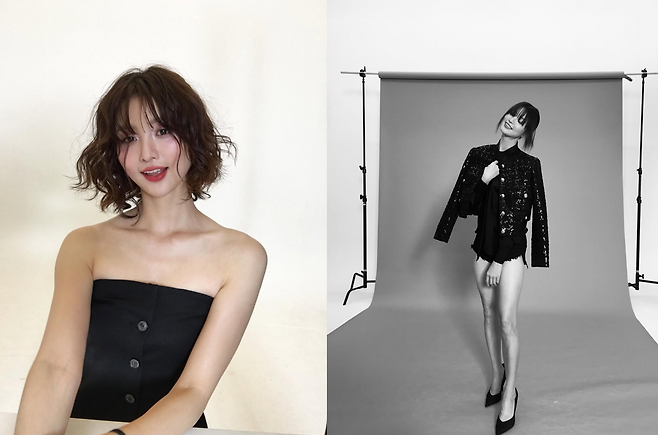 이어진 다른 사진 속 그녀는 튜브톱 의상에 굵은 웨이브 헤어스타일로 변신을 했다. 앞선 시크한 모습과는 정반대의 사랑스러운 매력을 발산하며 팬들의 마음을 설레게 했다.