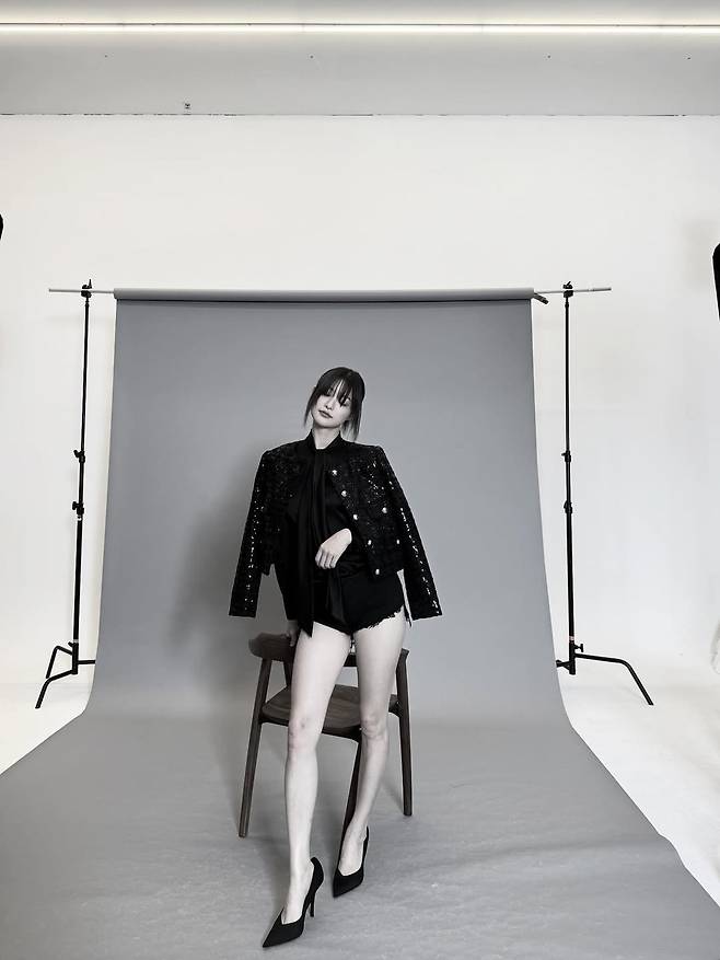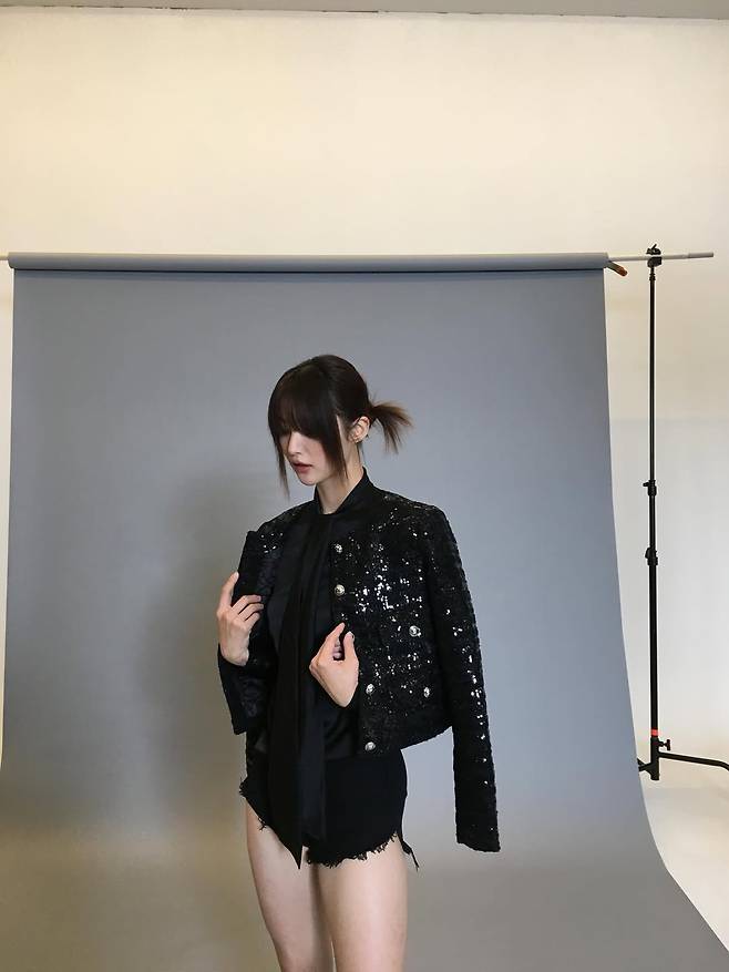 공개된 사진 속 그녀는 파격적인 하의실종 패션으로 모두의 시선을 사로잡고 있었다. 빛을 받아 반짝이는 검은색 스팽글 재킷과 아찔한 숏팬츠는 그녀의 각선미를 뽐냈다.