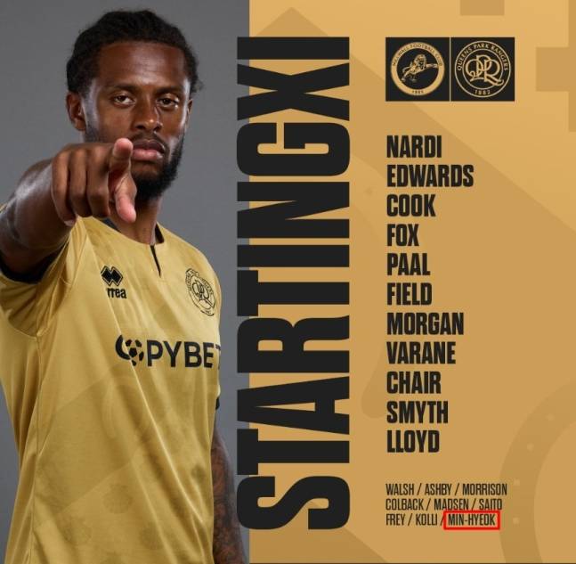 이날 경기 앞두고 QPR은 지난해 K리그1 '영플레이어', 베스트11을 수상하고 MVP 최종 후보에 들었던 양민혁을 일본 올림픽대표 출신 사이토 고키 등 9명의 교체 명단에 포함시켰다.