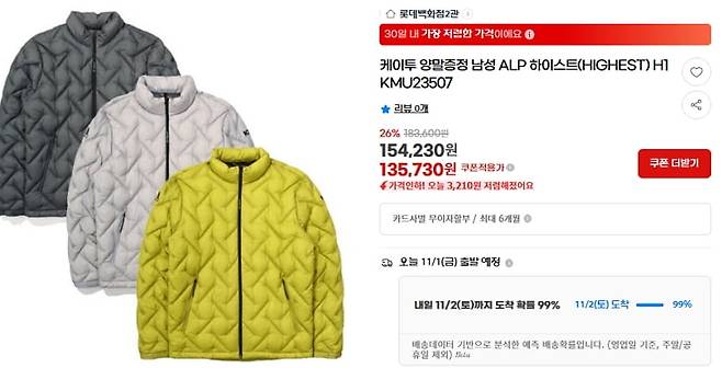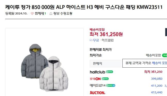비교 대상은 케이투 알프하이스트 H1과 코오롱 에그라이트. 년식 확인.