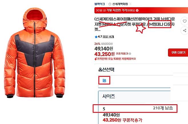 주의 4-5년 정도된 재고 추정, 백화점 물건 이라도 꼼꼼히 살펴보고,
