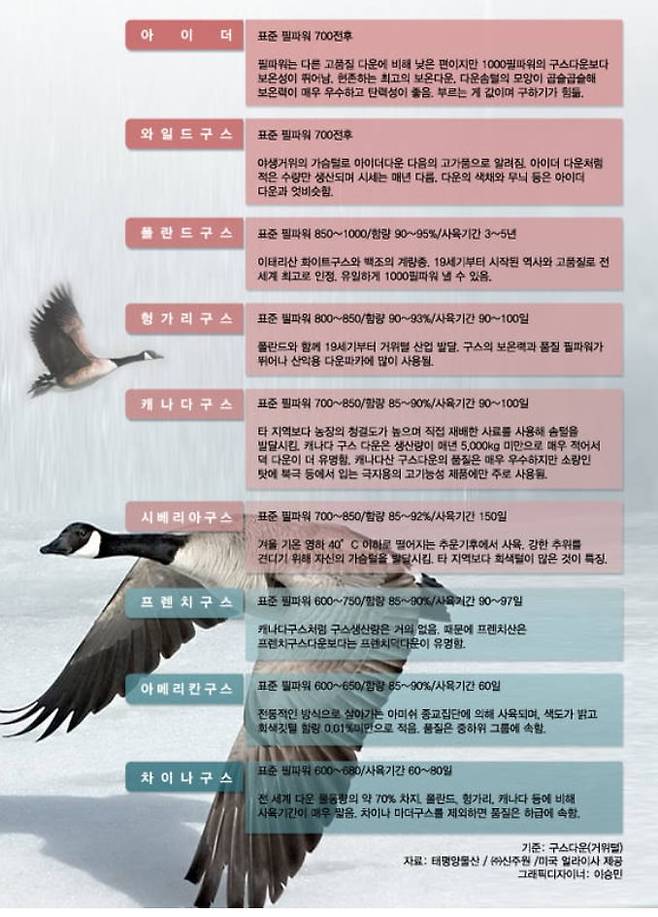 폴리쉬 마더구스- 850필 이상. 일반 폴리쉬 구스는 700필 이상.