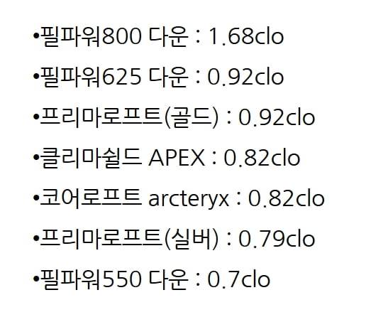 보온력. CLO 값.