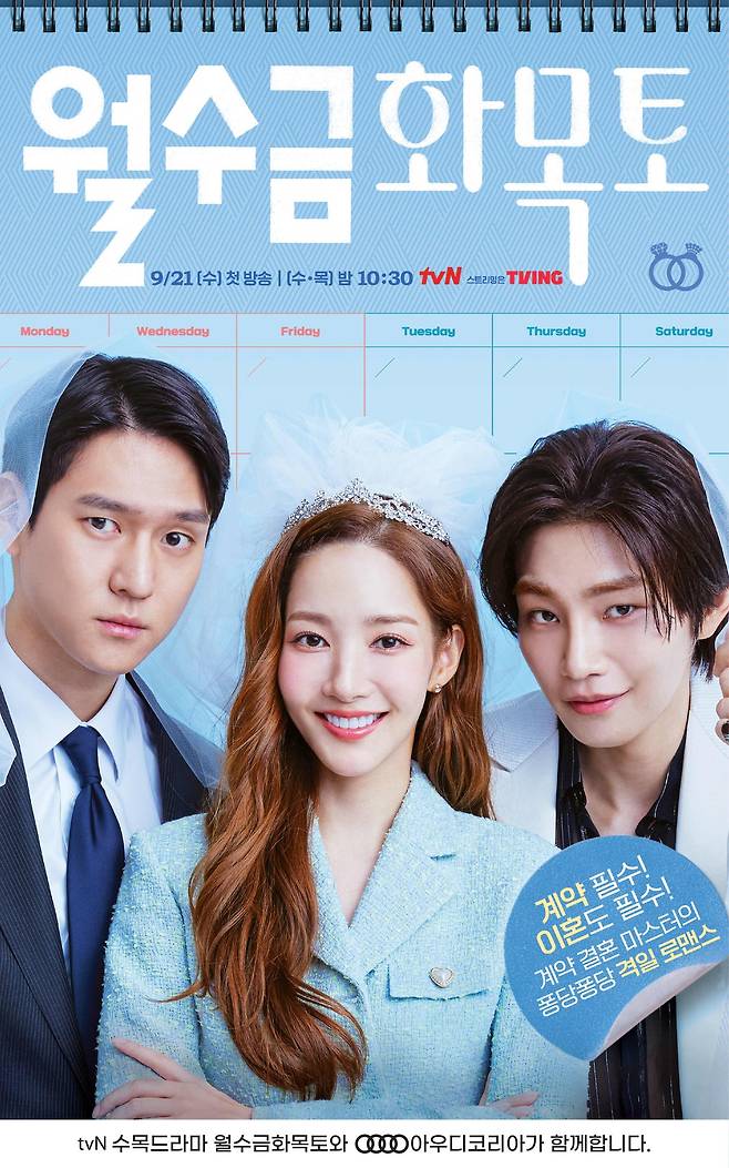 9월 21일 첫 방영을 시작한 박민영, 고경표, 김재영 주연의 tvN 새 수목 드라마 '월수금화목토'는 싱글이지만 결혼을 필요로 하는 고객들에게 맞춤형 계약 결혼을 제공하는 싱글 라이프 헬퍼에 대한 이야기로, 완벽한 비혼을 위한 계약 결혼 마스터 최상은(박민영)와 월 수 금 미스터리 장기 고객 정지호(고경표), 화 목 토 슈퍼스타 신규 고객 강해진(김재영)이 펼치는 퐁당퐁당 격일 로맨스 스토리다. 이 외에도, 강형석, 진경, 안석환, 김동현 등 개성 강한 명품 조연들이 함께 출연해 드라마의 재미를 더할 예정이다. 드라마에 등장하는 '아우디 RS e-트론 GT'는 아우디가 제시하는 지속가능한 모빌리티의 미래를 가장 잘 보여주는 고성능 4도어 쿠페로, 전기차 시대를 위한 아우디의 미래 지향적인 디자인, 혁신적인 기술, 고성능 차량 특유의 강력한 퍼포먼스와 스포티한 주행 성능을 갖춘 선구적인 전기 모델이다. '아우디 e-트론 스포트백'은 아우디의 DNA와 혁신적인 전기차 기술을 이상적으로 결합해 감성적인 디자인, 다이내믹한 주행 성능, 최신 기술과 편의 기능을 갖춘, 순수 전기 SUV이다.