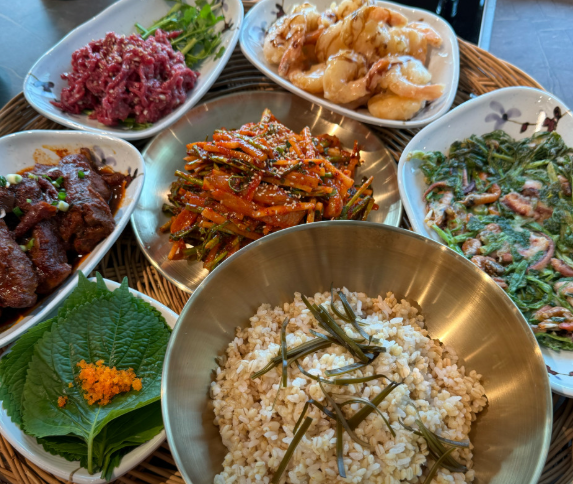 ▶ 육회, 크림새우, 회무침, 등갈비 등 사이드가 함께 제공
