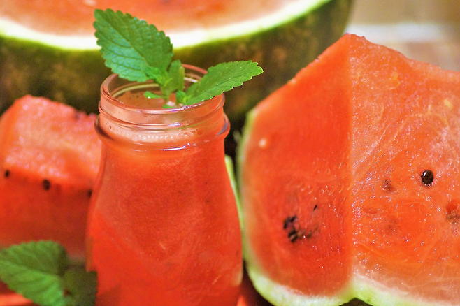 - 수박즙이나 레몬물: 갈증 해소에 좋고, 결석 예방에도 도움이 되는 구연산이 들어 있어요. 수박은 수분 함량이 90% 이상으로 여름철 수분 보충 식품으로도 훌륭하죠.