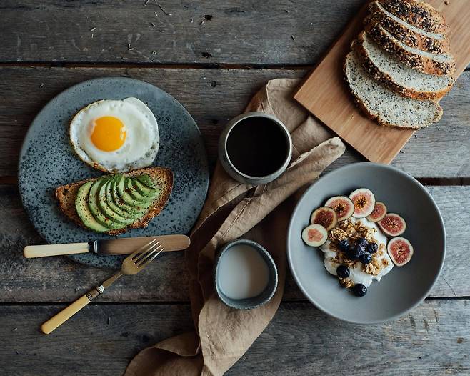 • 일반 아침 : 삶은 계란 2개 + 통곡물 빵 1장 + 샐러드