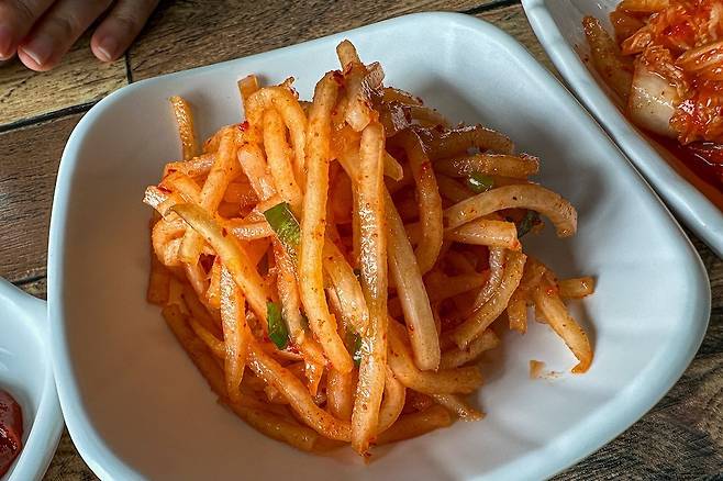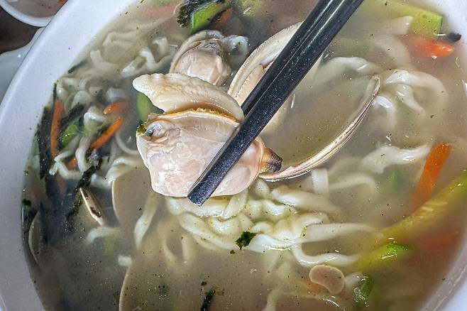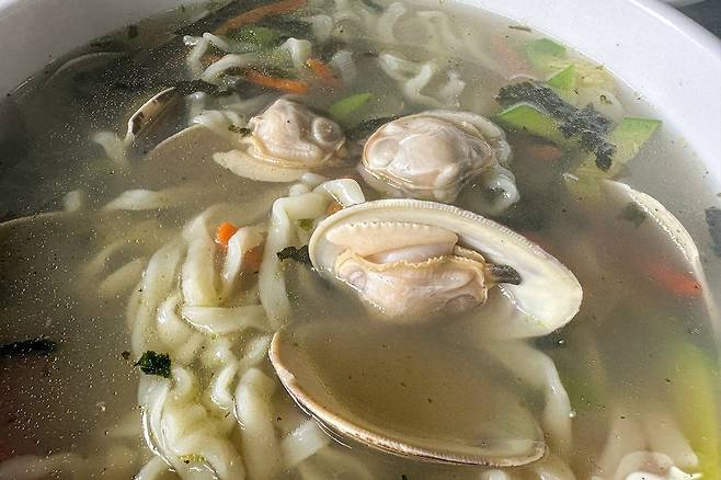 일단 조개 퀄리티가 좋다. 대합은 아니지만 중합 정도 되는 퀄리티다. 바지락의 10배 정도 되는 크기. 그러니 조개를 먹는 쫄깃함도 있고, 국물도 시원해서 좋았다. 자체적으로 면을 만드는 것은 아닌 듯한데 면도 나쁘지 않았다. 김치도 더할 나위 없이 좋았고 덕분에 모든 것이 합이 아주 잘 맞아서 먹으면서도 즐거웠다. 이게 진정한 맛집 아닌가 싶다.