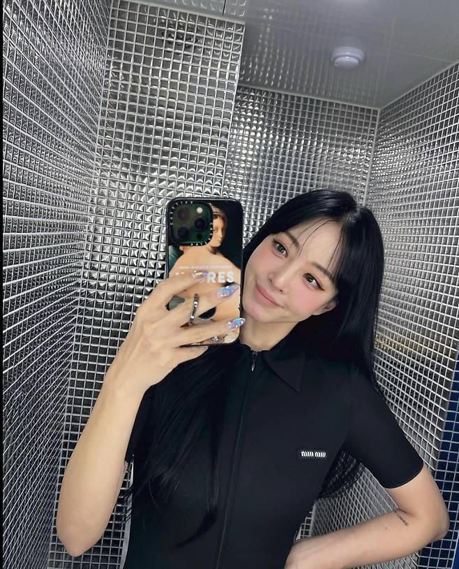 또, 한예슬은 블랙 가죽 미니스커트를 착용해 고혹적이고 시크한 분위기를 자랑했습니다.