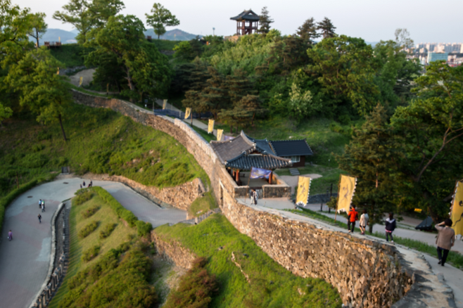 네 개의 문루는 성곽 산책의 리듬을 만들어준다. 남문 진남루와 북문 공북루는 조선시대 원형을 간직하고 있고, 동문 영동루와 서문 금서루는 복원을 통해 현재의 모습을 갖췄다. 특히 광복루는 1946년 백범 김구와 이시영이 직접 이름을 붙인 곳으로, 백제와 조선, 근현대사가 한 공간에 겹쳐진 상징적인 지점이다.