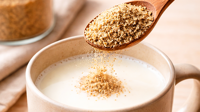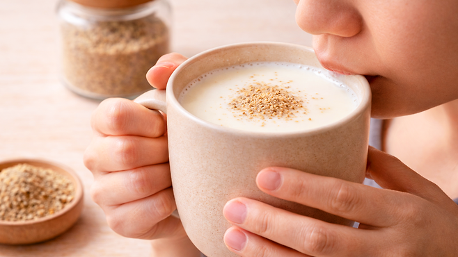 만드는 방법은 복잡하지 않다. 우유 200ml를 약 50~60도로 데운 뒤 들깻가루 1큰술, 대략 10~15g 정도를 넣고 잘 저어주면 된다. 이 온도대는 우유가 끓지 않으면서도 소화 작용이 원활해지는 구간으로, 영양소 흡수에 유리한 조건을 만든다.