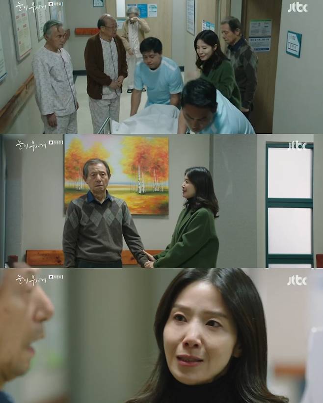 19일 방송된 JTBC 드라마 ‘눈이 부시게’에서 양소민과 아버지 양재성 배우가 부녀 관계로 효자 요양병원에서 어머니이자 아내를 떠나 보내는 슬픈 모습이 그려졌다.