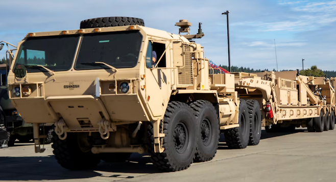 문제의 사진은 지난해 7월 호주에서 열린 미·호 연합훈련 ‘탈리스만 세이버 25’ 당시 촬영됐다. 다크 이글 발사대의 배치 형태와 타이폰 중거리 발사기의 선박 적재·하역 훈련 장면이 담겼다.